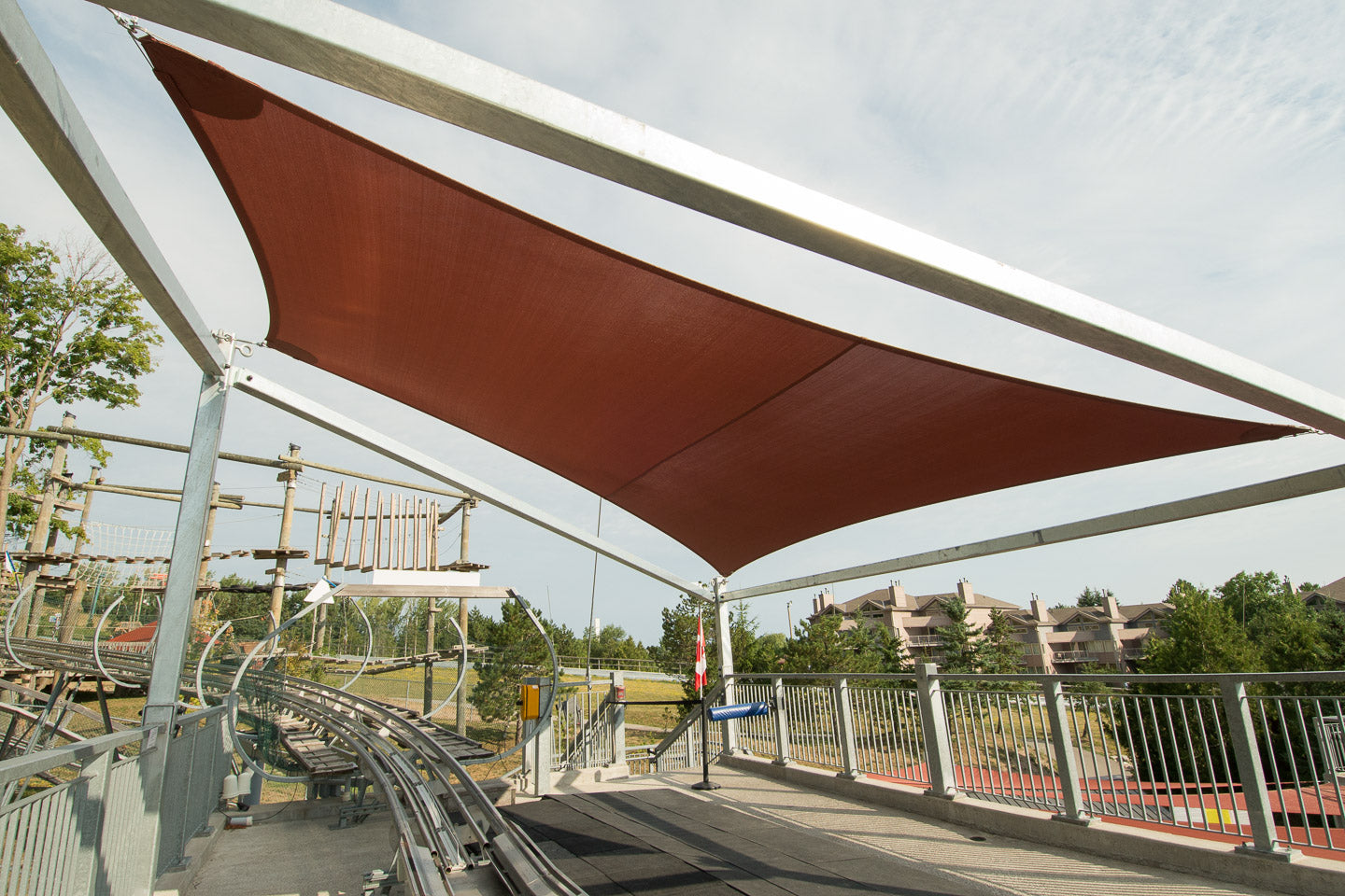 From skiing in the winter to mountain biking, golf and their Ridge Runner roller coaster in the summer, Blue Mountain is Ontario’s premier all-season resort. Shade Sails Canada has been working with Blue Mountain for the past 5 years with multiple iterations of shade structures installed at various stages during their development. The initial shade structure was installed to protect the staff and customers, providing shade for them to work safely in the summer.
