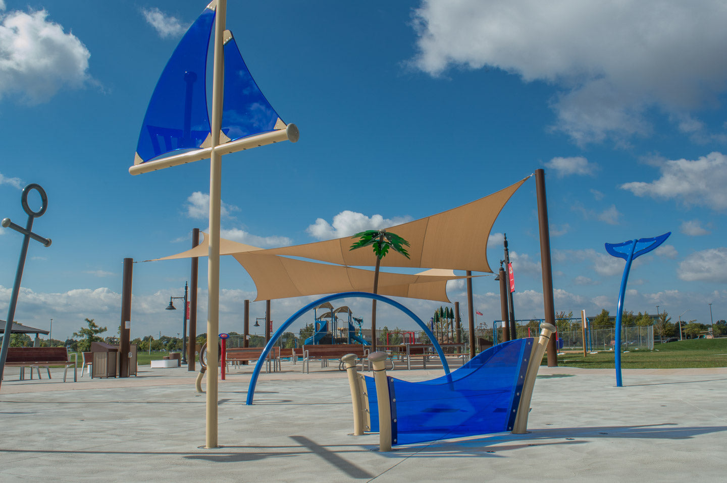 Shade Sails Canada is a proud preferred supplier to Blue Imp Playgrounds, one of the largest playground manufacturers in Canada who recently celebrated 100 years in business. The City of LaSalle recently constructed a large children’s facility and were looking to provide a large amount of shade to protect the children and parents using the facility in the summer.