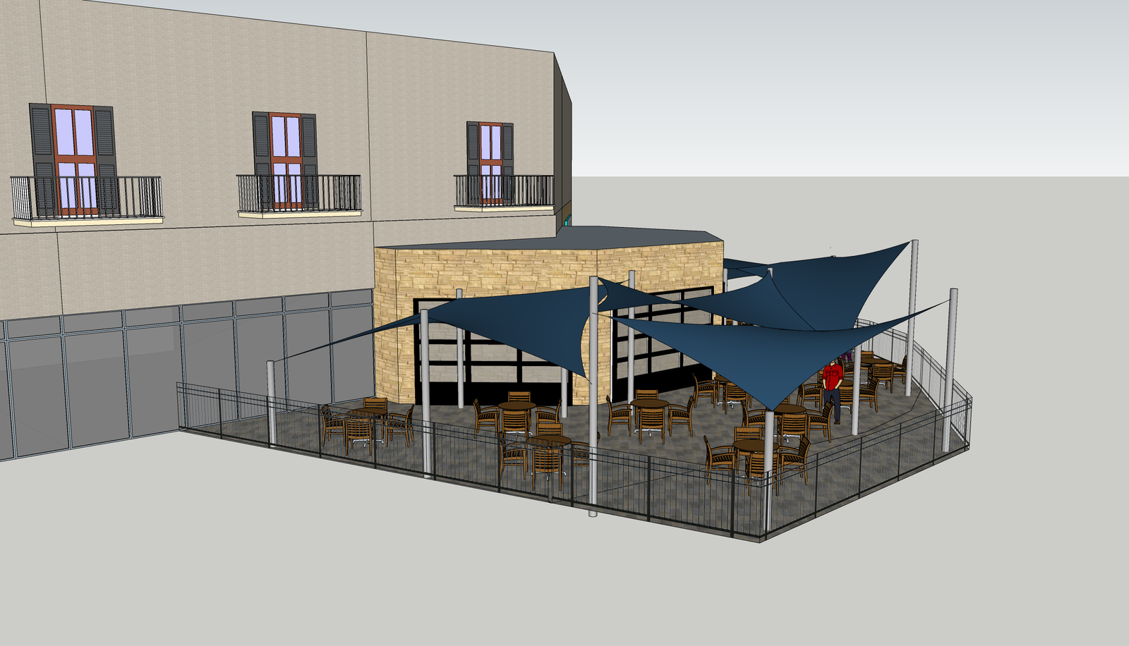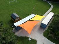 A Free Span Fabric Structure is a cable-reinforced, high-tension shade sail stretched between multiple anchor points. The sail can be attached to existing buildings and/or engineered posts designed to handle significant loads.